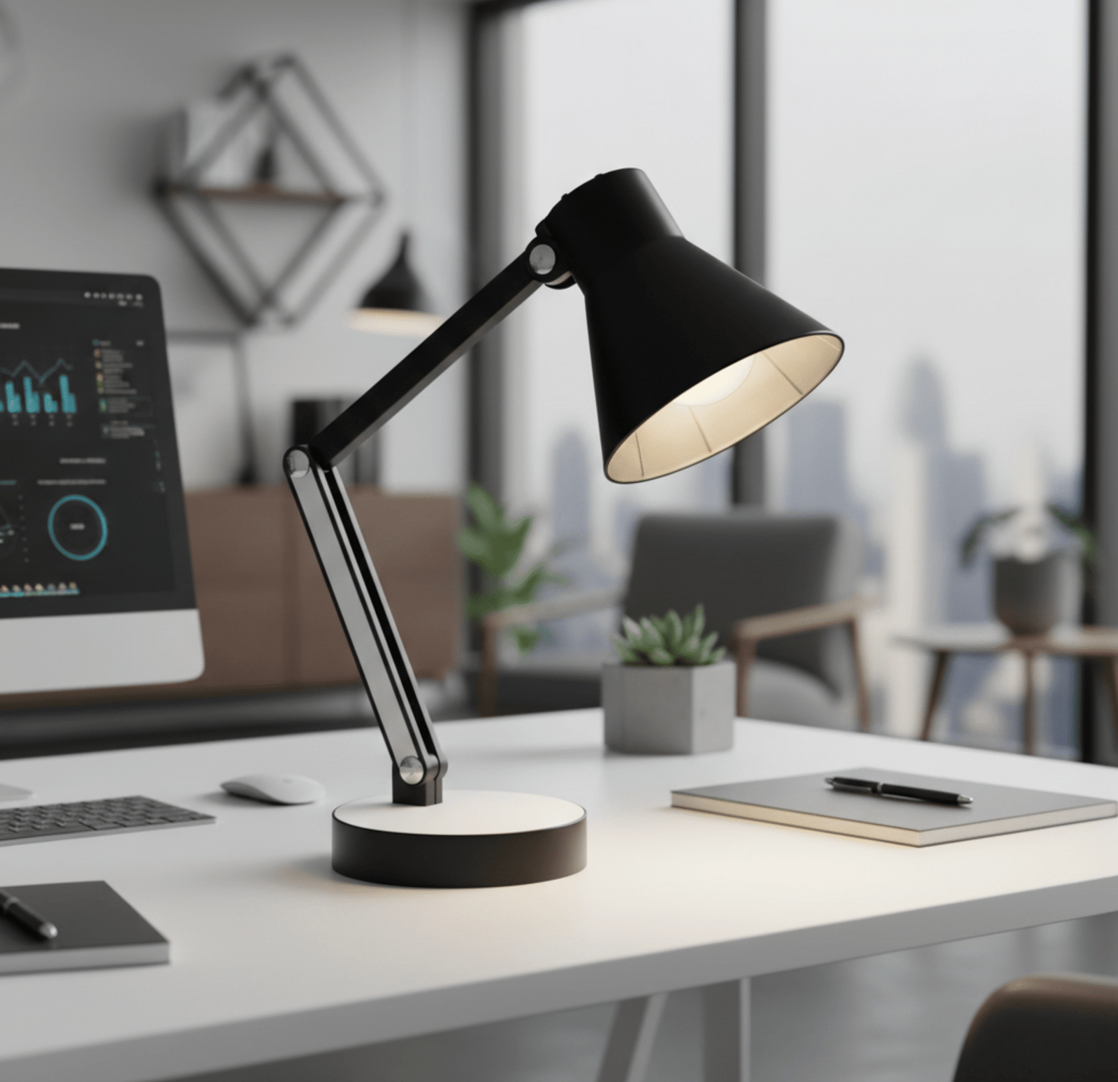A luminária articulada de mesa é uma opção prática e eficiente para iluminar de forma adequada o ambiente de trabalho, estudo ou até para sua escrivaninha ao lado da cama. Com sua estrutura articulada, a luminária pode ser ajustada de acordo com a preferência do usuário, direcionando a luz para onde ela é necessária. Além disso, sua base é estável, proporcionando uma fixação segura e evitando que a luminária caia ou se mova.