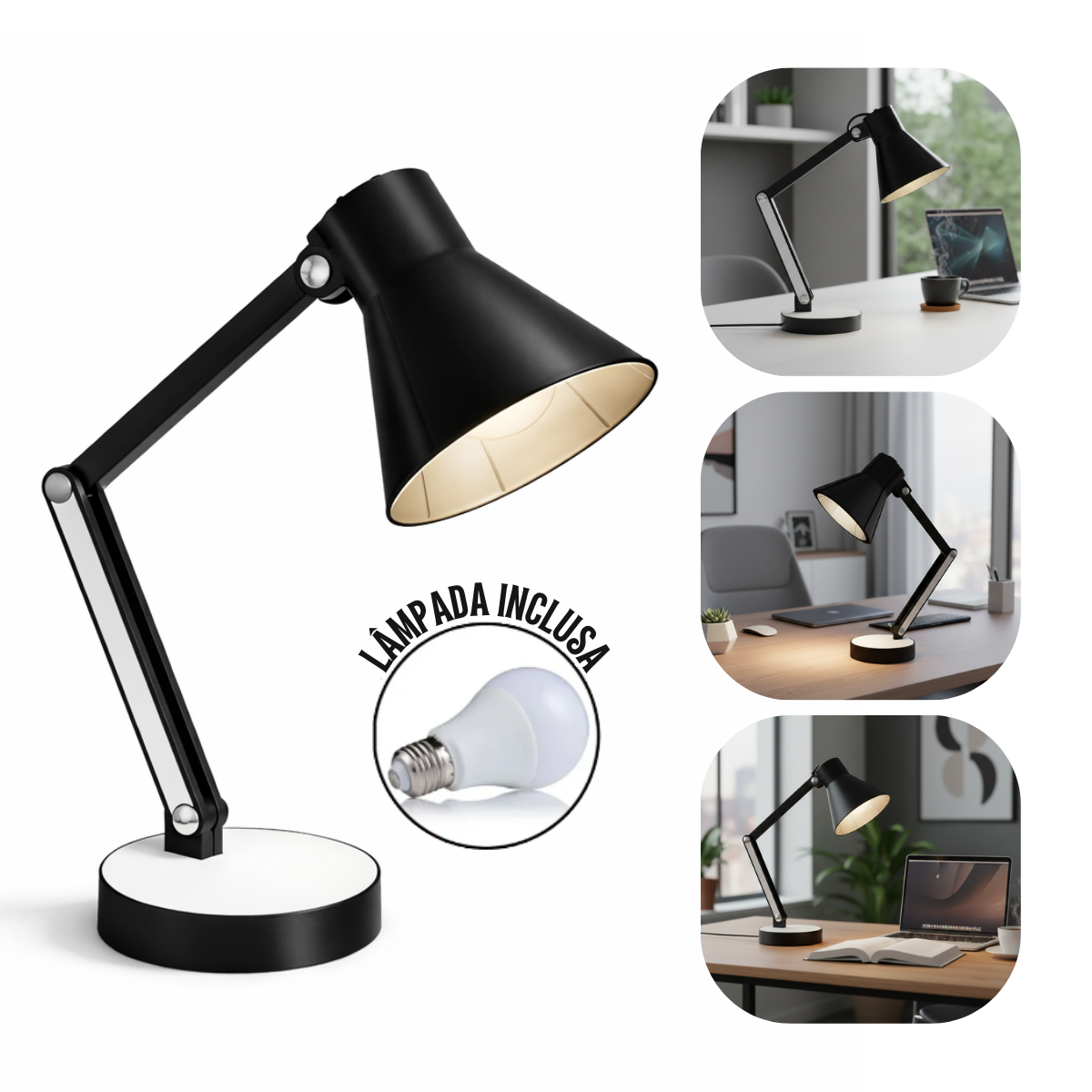 Outra vantagem é que essa luminária articulada de mesa é compacta e fácil de posicionar ao lado da cama ou na sua mesa de trabalho, ocupando menos espaço do que os abajures tradicionais.